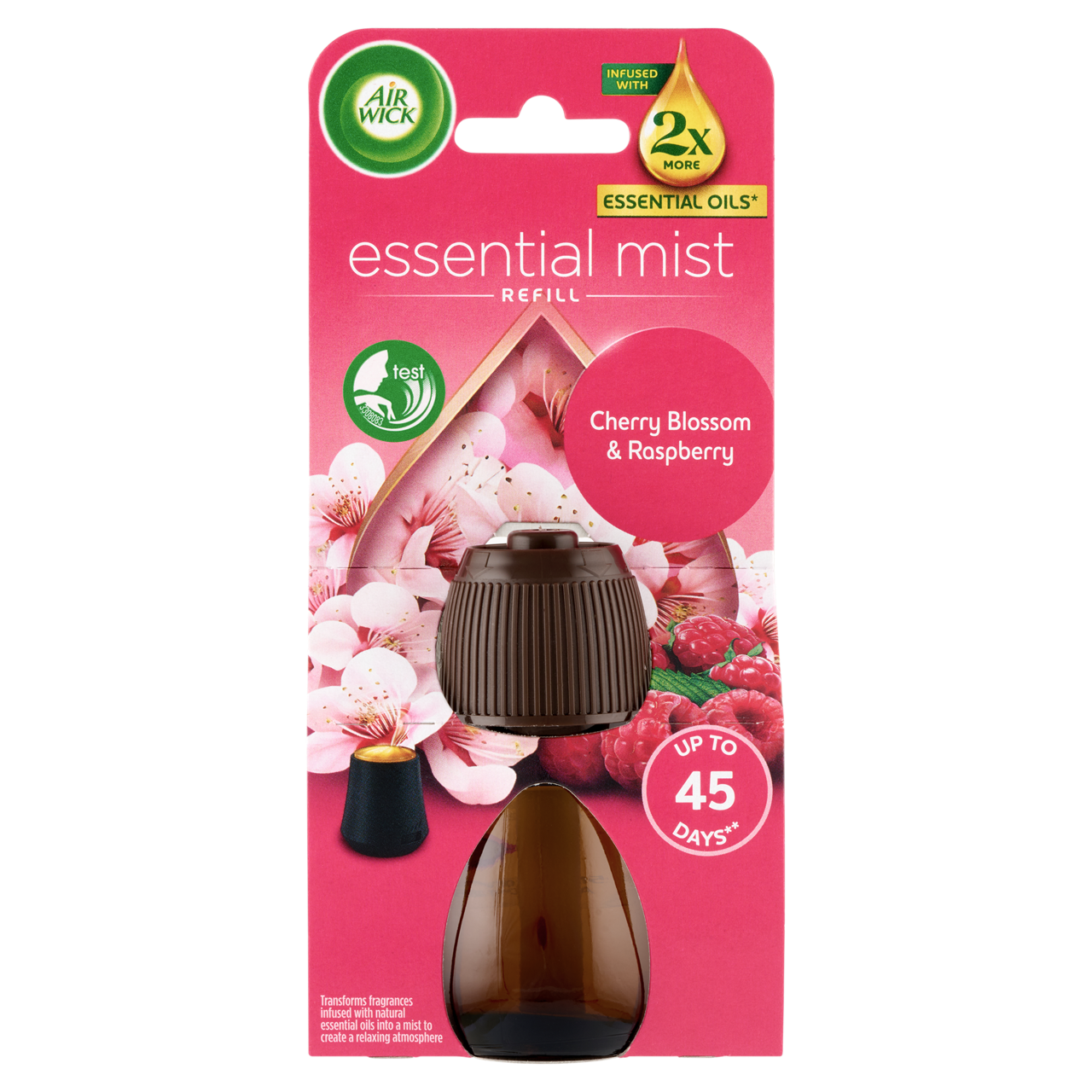 Az Air Wick Aroma Mist Cseresznyevirág és málna aroma diffúzor utántöltő a virágzó tavasz és a friss gyümölcsök illatát hozza el otthonodba. A cseresznyevirág finom, nőies aromája lágyan találkozik a málna édes, gyümölcsös frissességével, megteremtve az energikus, mégis harmonikus légkört. Ez az illat tökéletes választás a nappaliba vagy hálószobába, ahol friss, vidám hangulatot szeretnél.