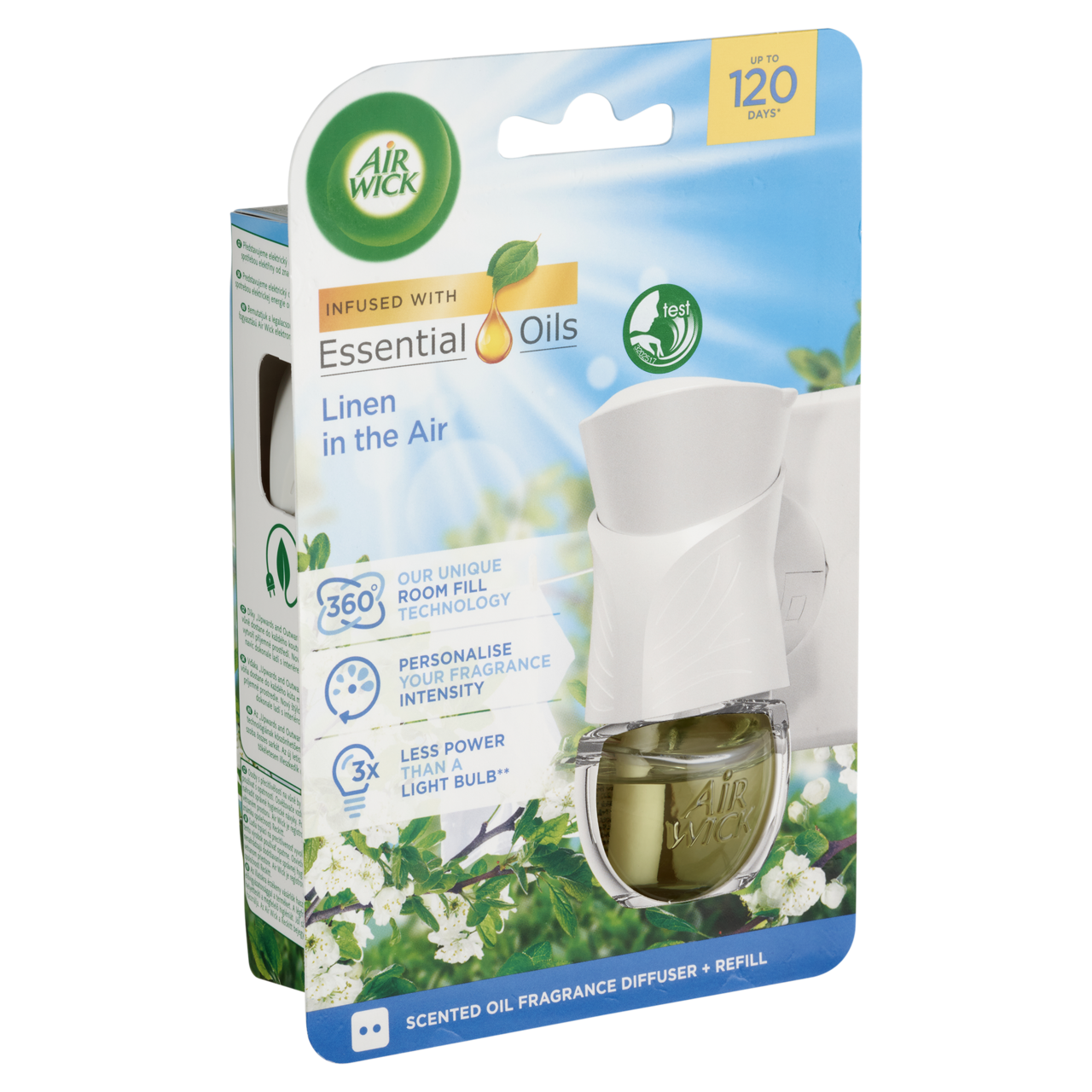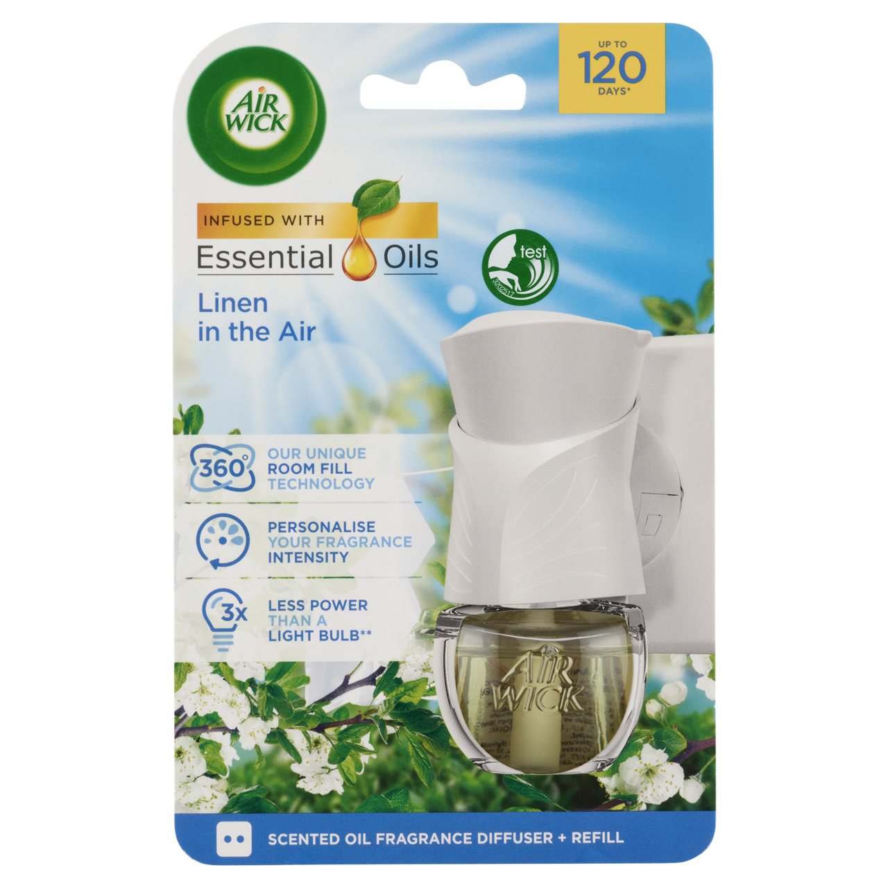 Az Air Wick elektromos légfrissítő készülék “Upwards and Outwards” illatkibocsátó technológiának köszönhetően, az illat betölti a szoba összes sarkát.