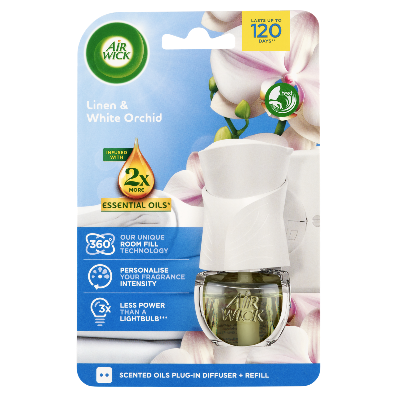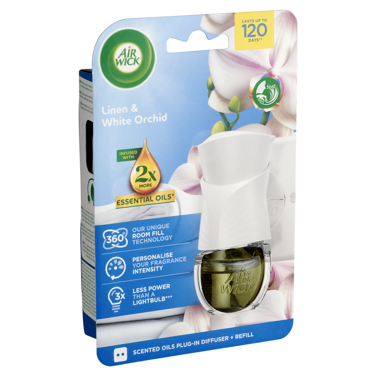 Air Wick elektromos légfrissítő készülék és utántöltő – Pamut és Fehér Orchidea.