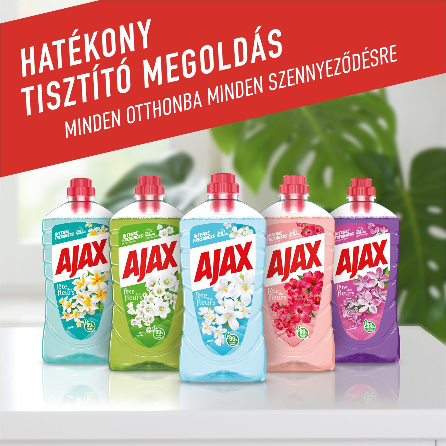 Az Ajax Floral Fiesta Jázmin általános tisztítószer virágos, friss illattal és erőteljes tisztítóhatással hozza el a ragyogást otthonodba. Formulája gyorsan fellazítja és eltávolítja a makacs szennyeződéseket, miközben természetes illatkivonatai hosszan tartó frissességet biztosítanak. A 99%-ban természetes eredetű összetevőkből, valamint 97%-ban biológiailag lebomló formulából készült tisztítószer hatékonyan és környezettudatosan támogatja a mindennapi takarítást. Hideg vízben is kiválóan teljesít, így energiatakarékos megoldást kínál.
