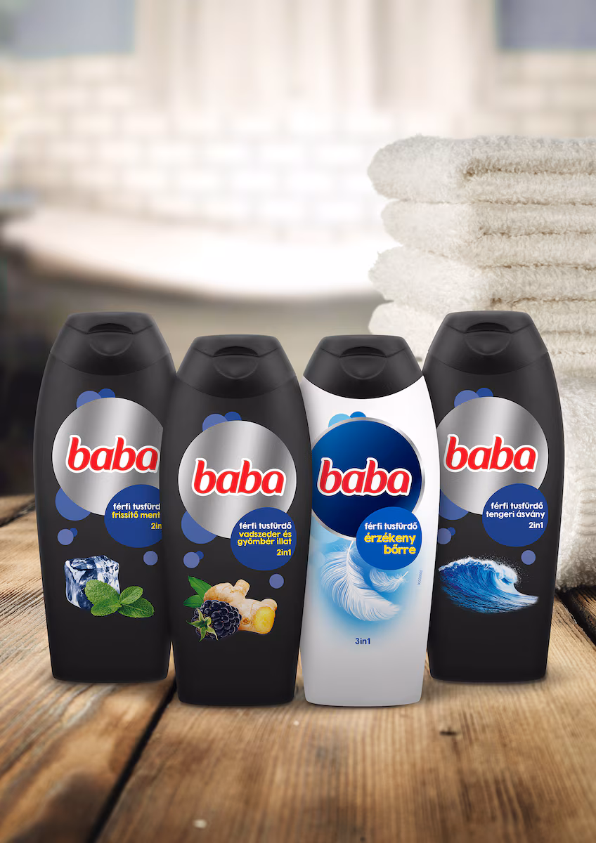 A Baba férfi tusfürdők formuláit kifejezetten a férfiak igényeire szabottan alakították ki, mert az apukáknak is jár egy kis feltöltődés! Legyen szó egy forró nyári napon egy hűsítő zuhanyról, vagy egy hideg téli estén egy kád forró vízről, a Baba férfi tusfürdők ideális választásnak bizonyulnak, és napi szinten is használhatóak. A 2 az 1-ben tulajdonságuknak köszönhetően nemcsak tisztálkodásra, de hajmosásra is alkalmasak, ezáltal is megkönnyítve a szorgos mindennapokat. Egyszerűen önts egy keveset a tenyeredbe a flakonból, kellően habosítsd fel, majd élvezd a frissítő illatot és kényeztető érzést, mielőtt leöblítenéd! Jó kezdet minden reggelre, és befejezés minden estére. Ráadásul használható fürdésre és kézmosásra is.