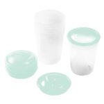 Az anyatej, a gyümölcslevek és más ételek tárolóedényeit az élelmiszerek újrafelhasználható tárolására és fagyasztására tervezték. Az itatócsõrrel ellátott fedél lehetõvé teszi az anyatej közvetlen pohárból való etetését. (Az étel/ital hõmérsékletét mindig ellenõrizze, mielõtt a babának adná!)