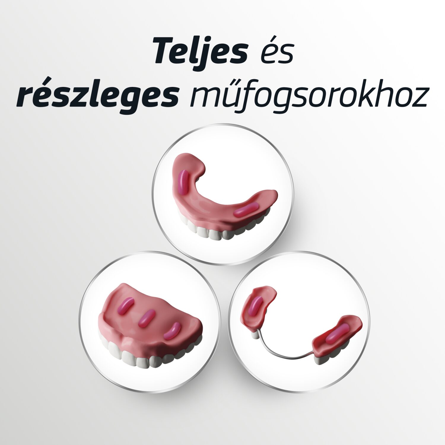 - Teljes és részleges műfogsorhoz egyaránt használható