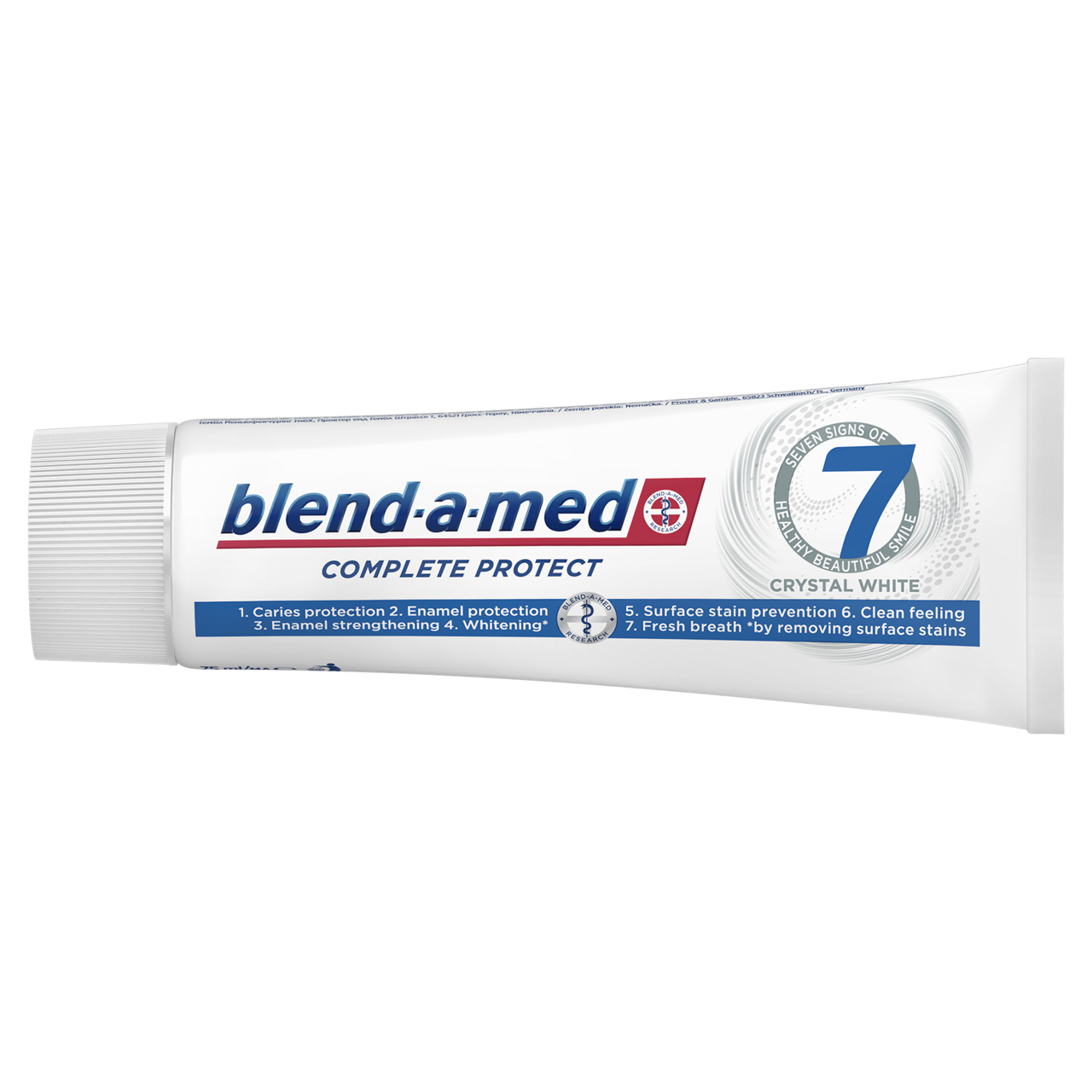 A Blend-a-med Complete Protect 7 Crystal White fogkrém a felületi elszíneződések eltávolításával fehéríti a fogakat, valamint teljes körű védelemmel segíti elő az egészséges és gyönyörű mosoly 7 jelét.