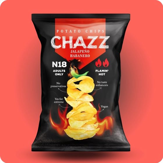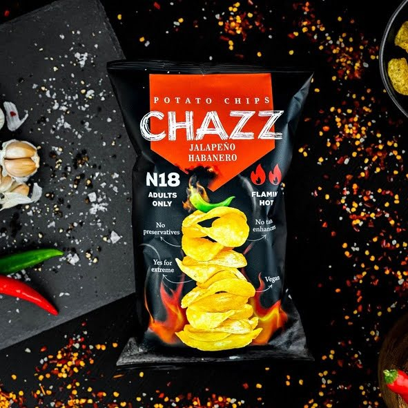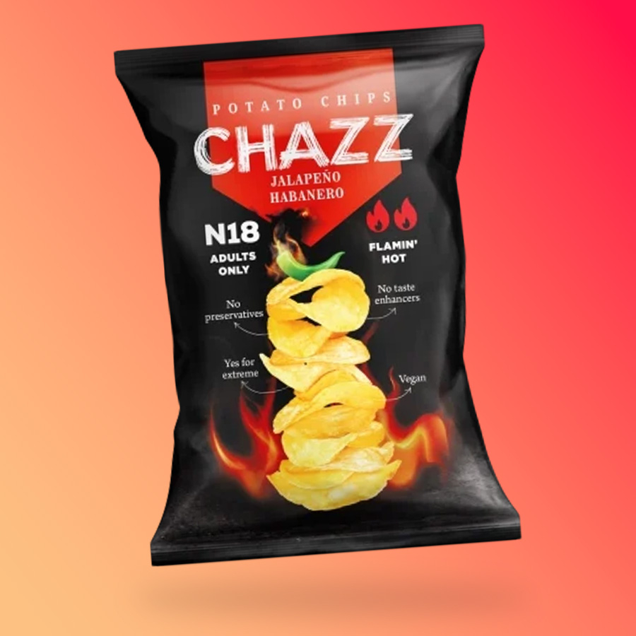 Chazz jalapeno és habanero ízű csípős burgonyachips 90g.