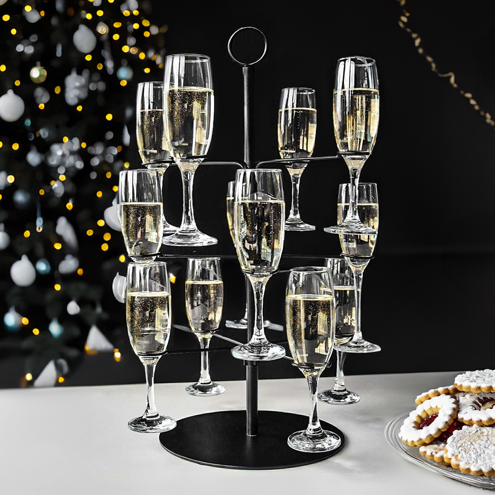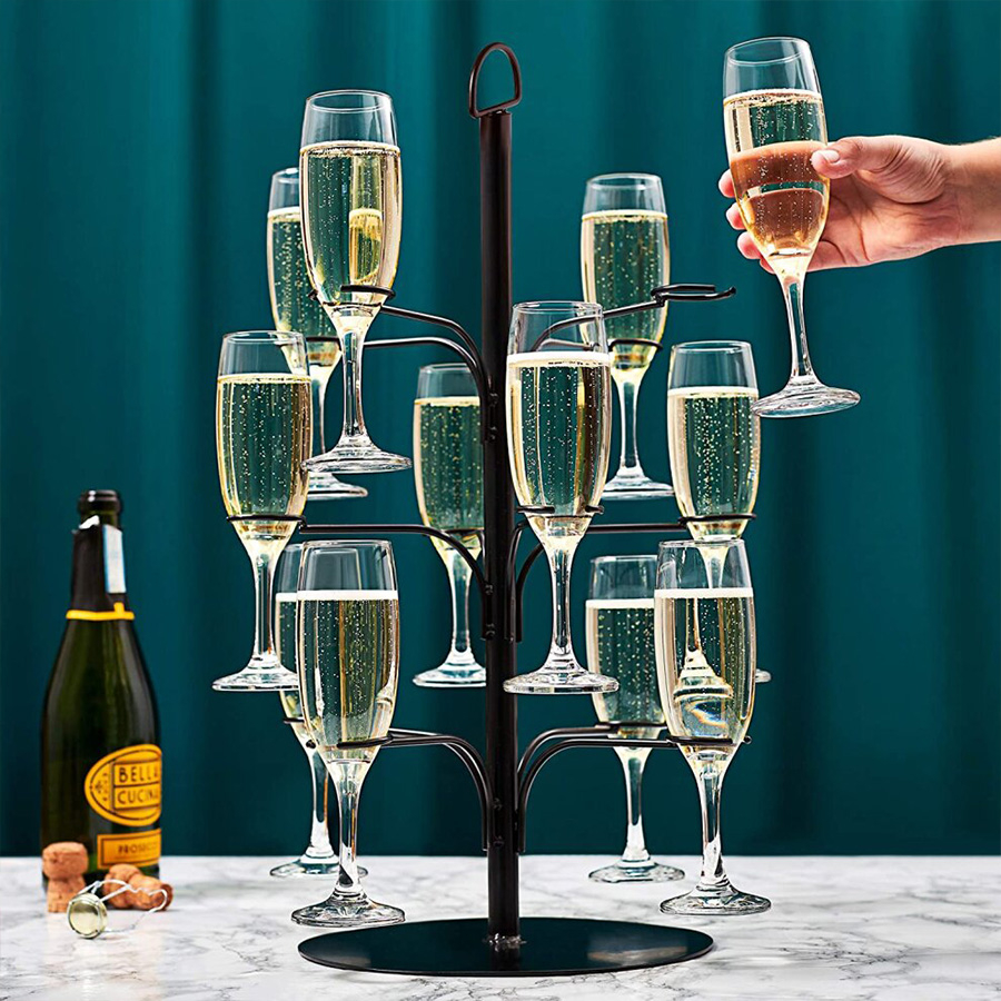 Ez a koktélfa állvány minden különleges alkalomra kötelező darab. Ez az állítható állvány legfeljebb 12 pohár tárolására alkalmas. Kompatibilis boros, pezsgős és koktélos poharakkal. Az állvány könnyen felállítható, matt fekete színű, letisztult kialakítású.