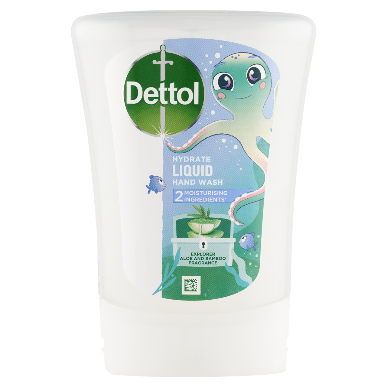 A Dettol Kids Explorer Aloe Vera és Bambusz utántöltő folyékony szappan formulája 2 hidratáló összetevővel* segít megőrizni a bőr természetes PH-értékét kézmosás után.
