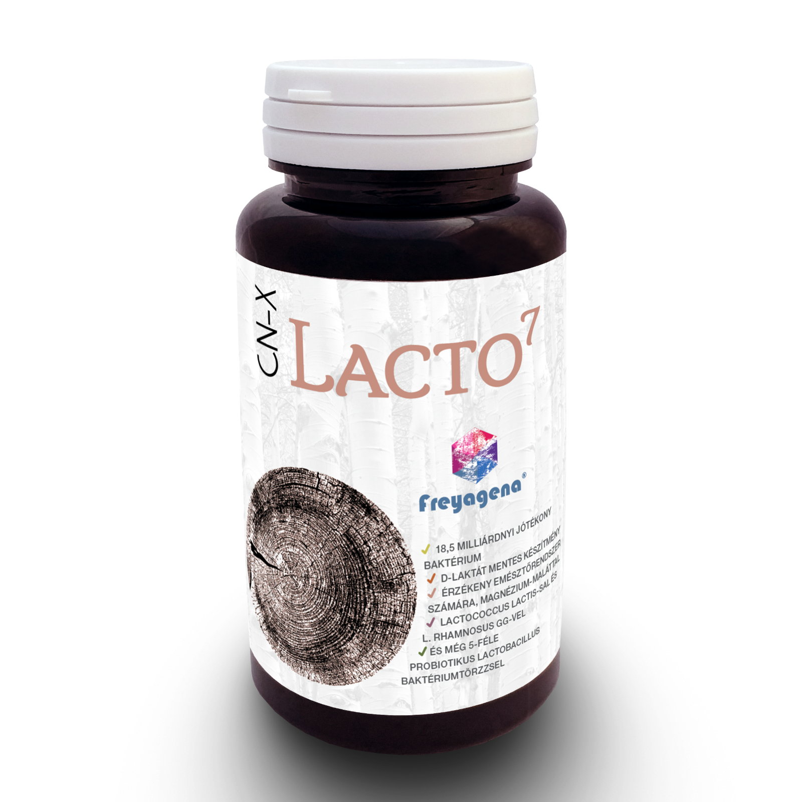 A Freyagena CN-X Lacto 7 termék 18,5 milliárdnyi jótékony baktériumot tartalmaz. A D-laktát-mentes készítmény magnézium-maláttal készült, ennek köszönhetően érzékeny emésztőrendszer esetén is fogyasztható.