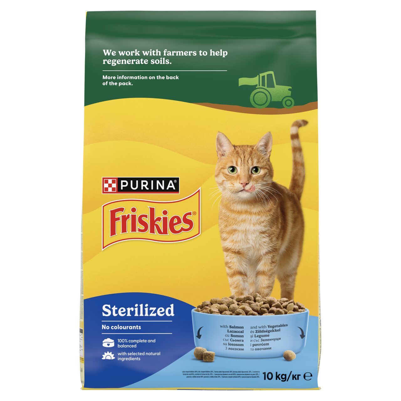 A Friskies Sterilcat macskaeledel lazaccal és tonhallal készült, hozzáadott zöldségekkel a kiegyensúlyozott ízért. A hal formájú és korong alakú tápszemek nemcsak ízletesek, de textúrájuknak köszönhetően segítenek a fogak tisztán tartásában is.