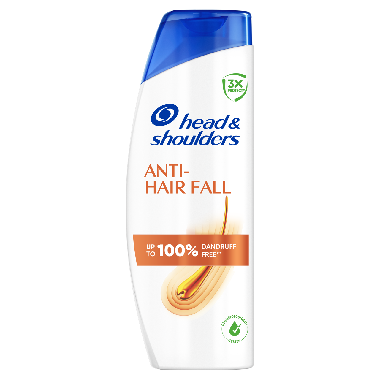 A Head & Shoulders Anti Hair Fall egy kimagasló hatékonyságú termék, amely mélyen ápolja a fejbőrt és véd a korpa, valamint a töredezés okozta hajvesztéssel szemben. A pirokton-olamint tartalmazó 3X Protect formula már az első hajmosástól mélyen hat a fejbőr három problémájának kiváltó okára: a korpásodásra, a korpásodás okozta viszketésre és a zsírosodásra.