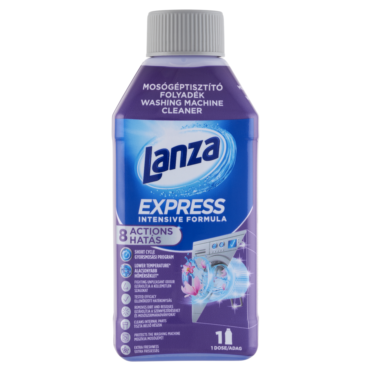 A Lanza Express mosógéptisztító folyadék egyedülálló összetételénél fogva: