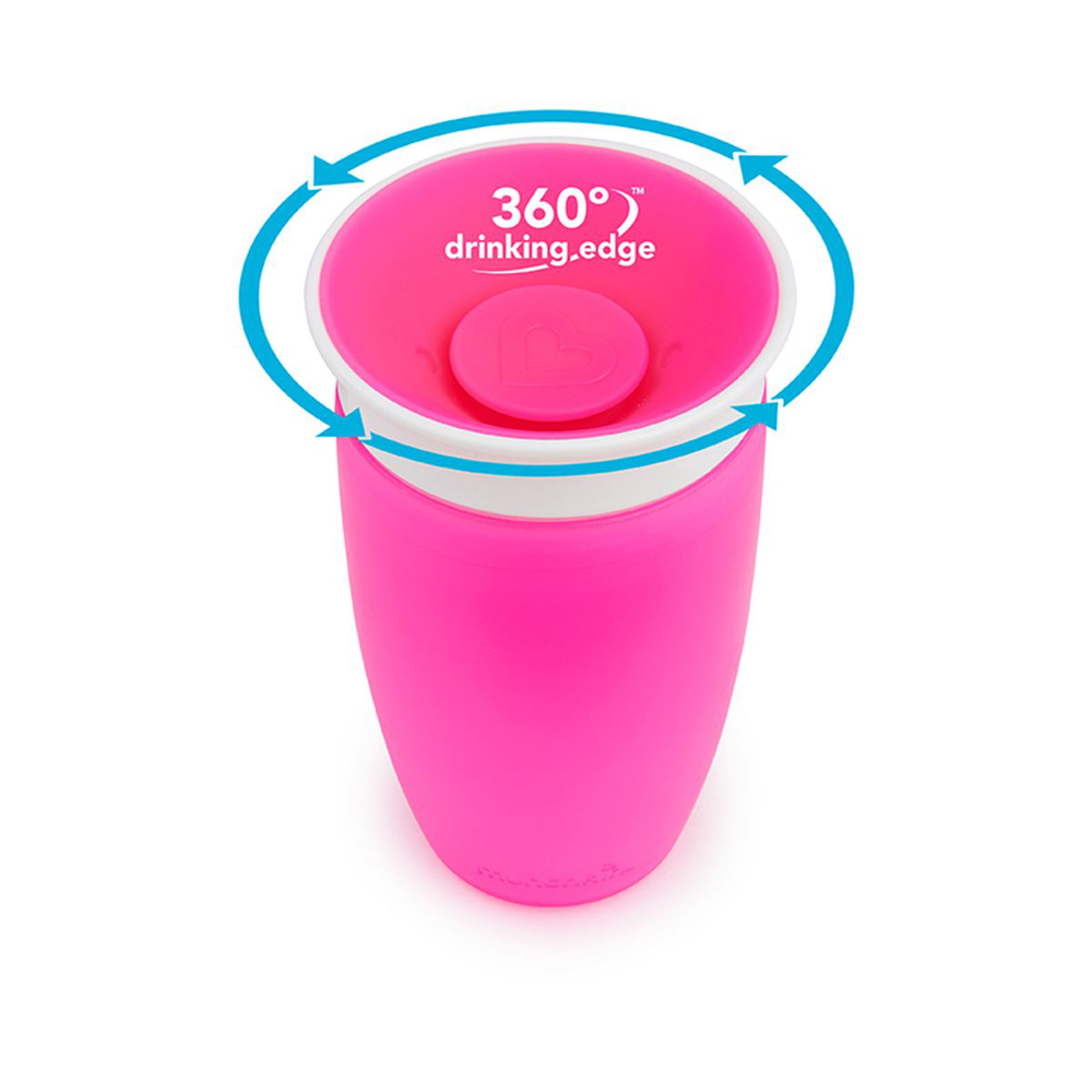 A Munchkin Miracle Cup egy 360 fokos itatópohár, amelynek peremérõl bárhonnan ihat a gyermek, nem kell aggódni a csöpögés miatt. Speciális szelepes teteje használat után automatikusan visszazár.
