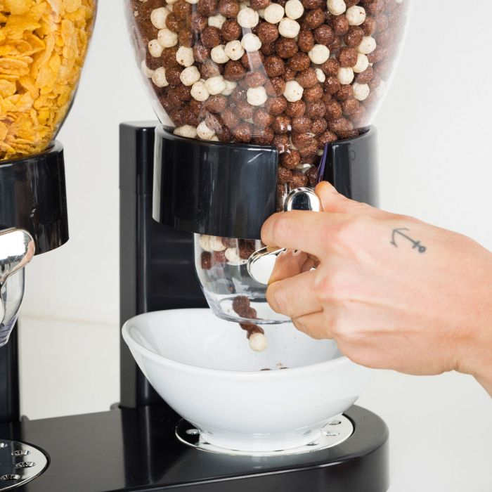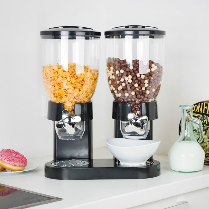 Valahogy mindig megszalad a kezünk amikor a müzlit a tálba öntjük… Tényleg, akármennyire vigyázunk a fele zacskó a tálban, asztalon és a földön (a kutya örömére) landol. Ilyenkor érezzük, hogy jó lenne valami szerkezet, ami megoldja ezt a hétköznapi problémát. Szerencsére úgy néz ki most megoldódik: itt egy kétrészes müzliadagoló!Tedd alá a tányért, csavard el a kart és gyorsan, kármentesen adagolhatod a megfelelő mennyiségű müzlit a tálba!Tipp: az egyik részbe tedd a kedvenc müzlidet, a másikba pedig aszaltgyümölcsöket, csokidarabokat és/vagy mogyorót és egyéb magvakat és állítsd össze az egyedi és finom reggelidet pár mozdulatban!