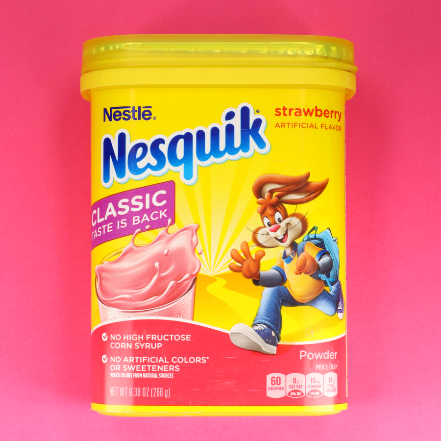 A gyerekek és a felnőttek egyaránt élvezhetnek egy hideg pohár rózsaszín tejet, mely a híres Nestle® Nesquick® eper ízesítésű tejkeveréknek köszönhető. 7 nélkülözhetetlen vitamint és ásványi anyagot tartalmaz, hozzáadott mesterséges színezékek vagy ízek nélkül! A tökéletes párosítás a belga gofri, pirítós és tojás mellé! Keverjen 2 evőkanál port 250ml tejbe.