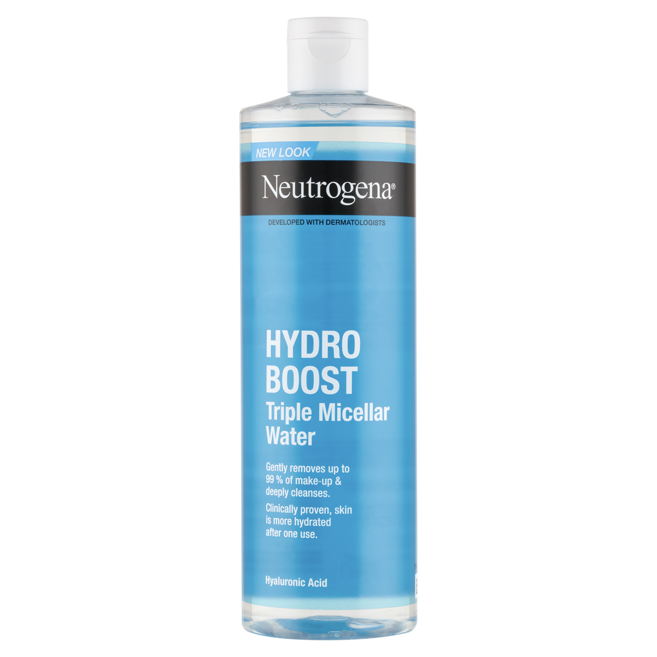 A Neutrogena Hydro Boost 3 az 1-ben micellás víz egyedülálló formulájú arctisztító, amely hialuronsavval dúsítva háromféle micellát tartalmaz – ezek szinergiában hatva egyszerre távolítják el a makacs sminket (beleértve a vízálló mascarát is), tisztítják el a szennyeződéseket és a felesleges faggyút, valamint fokozzák a bőr hidratáltságát. A nők 94%-a* úgy találja, hogy bőre tökéletesen tiszta.