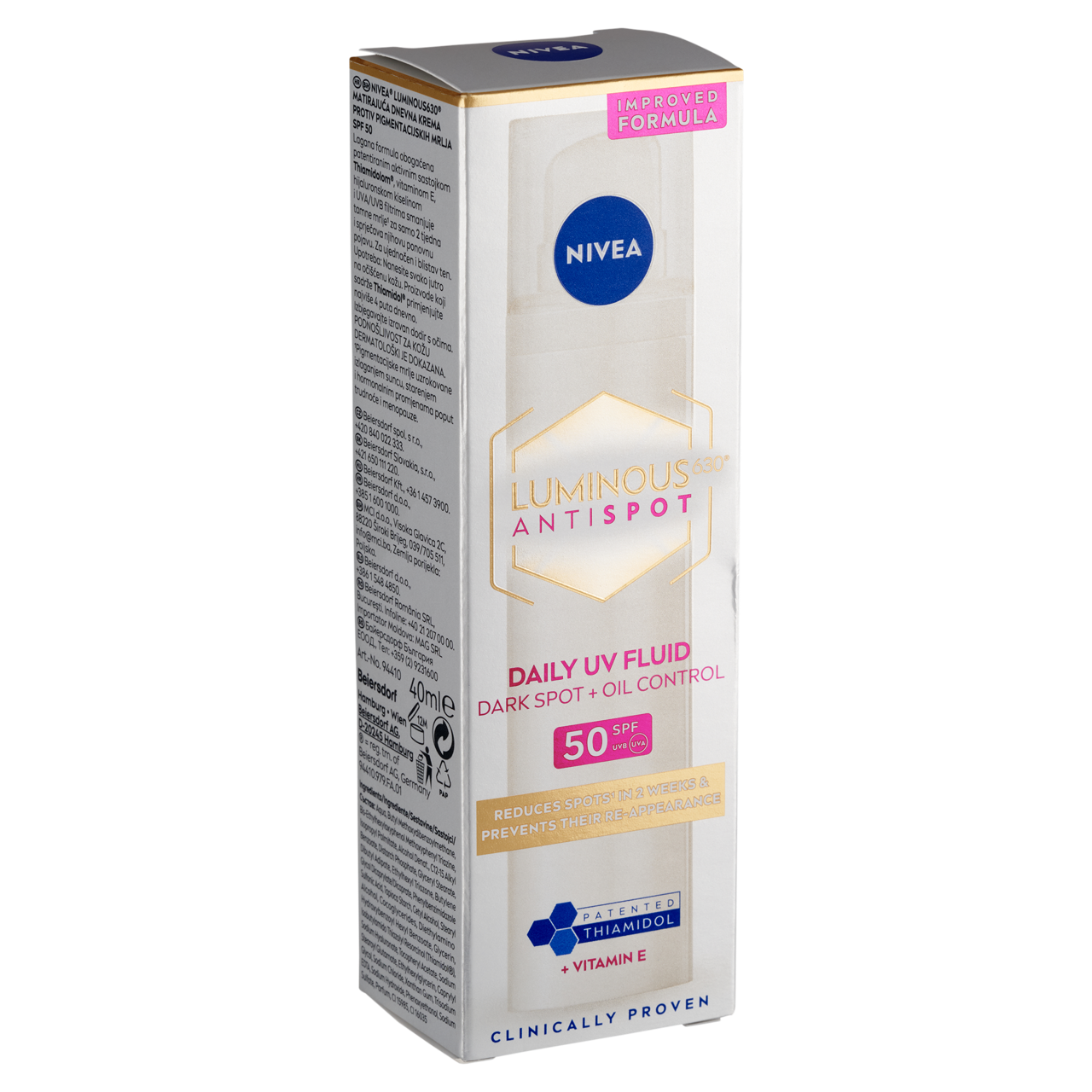 Könnyed formula és extra védelem. Akár 2 hét alatt csökkenti a sötét foltokat és segít megelőzni a kiújulásukat, egységes és ragyogó bőrt eredményez. 10 év intenzív kutatás és több mint 50 000 összetevő tesztelése után a NIVEA kifejlesztett egy új, rendkívül hatékony hatóanyagot a szabadalmaztatott Thiamidol®-t, mely sejtszinten kezeli a pigmentfoltokat.