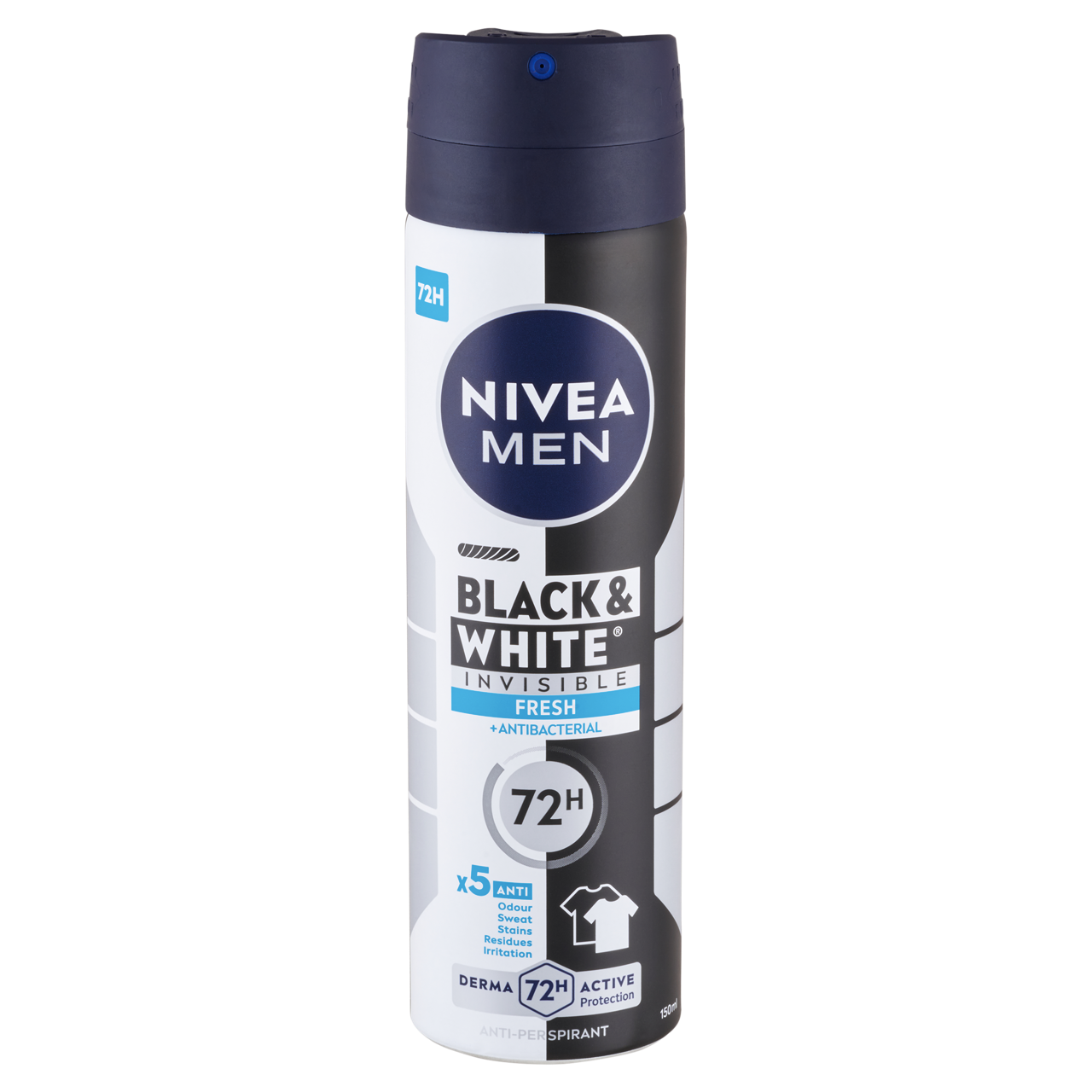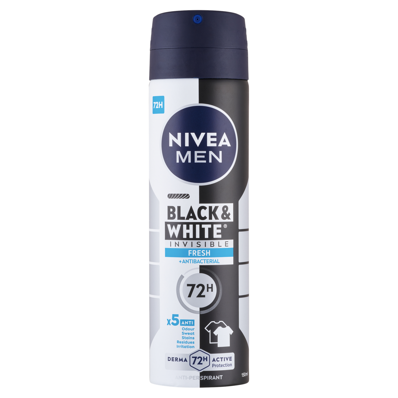 Bőrgyógyászatilag is igazolt bőrbarát hatású dezodor. Nem tartalmaz etil-alkoholt: NIVEA MEN Black & White Invisible Fresh Izzadásgátló Deo Spray 150 ml.
