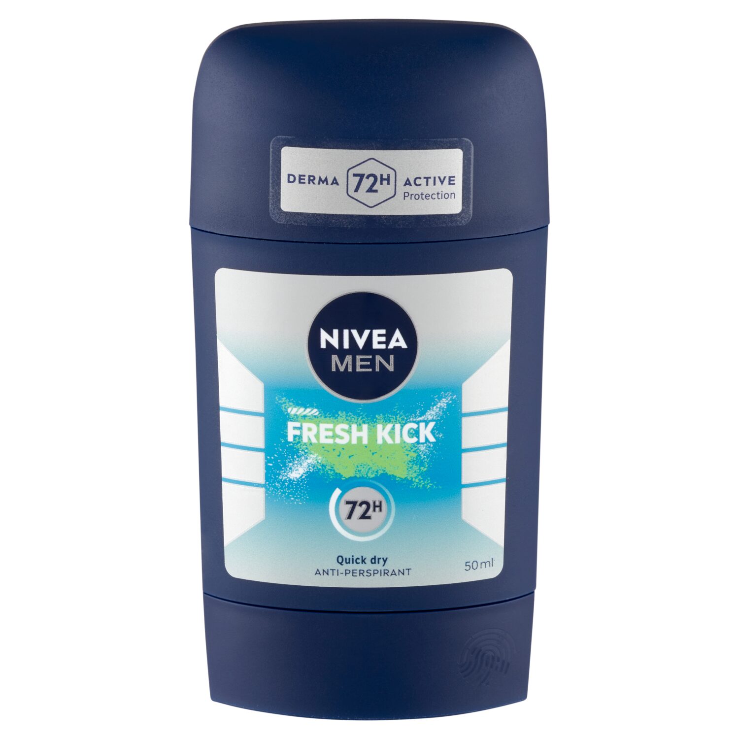 Intenzív, hosszantartó illatú izzadásgátló deo stift modern, férfias illattal az egész napos frissességért. Az emulzió technológiával kifejlesztett formulának köszönhetően puha textúrájú, könnyen kenhető, hosszantartó védelmet nyújt az izzadság és a szagok ellen, miközben gyorsan megszárad a bőrön. Etil-alkohol mentes formulájának köszönhetően nem irritálja a bőrt. Bőrbarát, bőrgyógyászatilag tesztelt termék. Férfias illatjegyek és megbízható védelem izzadás ellen: NIVEA MEN Fresh Kick Izzadásgátló Deo Stift 50ml