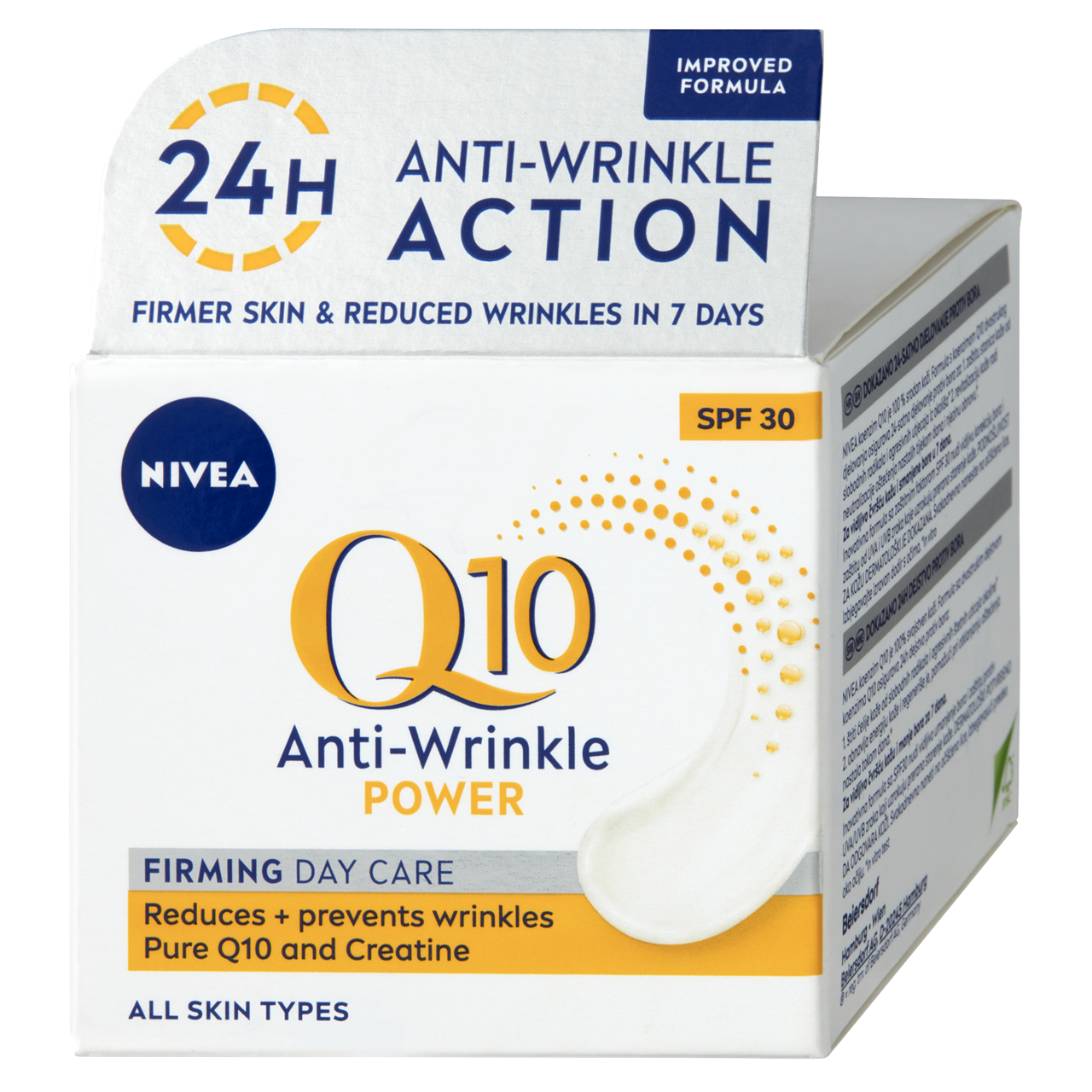 A NIVEA® által használt Q10 koenzim 100%-ban bőrazonos. Formulánk a kettős hatású Q10-zel támogatja a 24 órás ránctalanítást.*