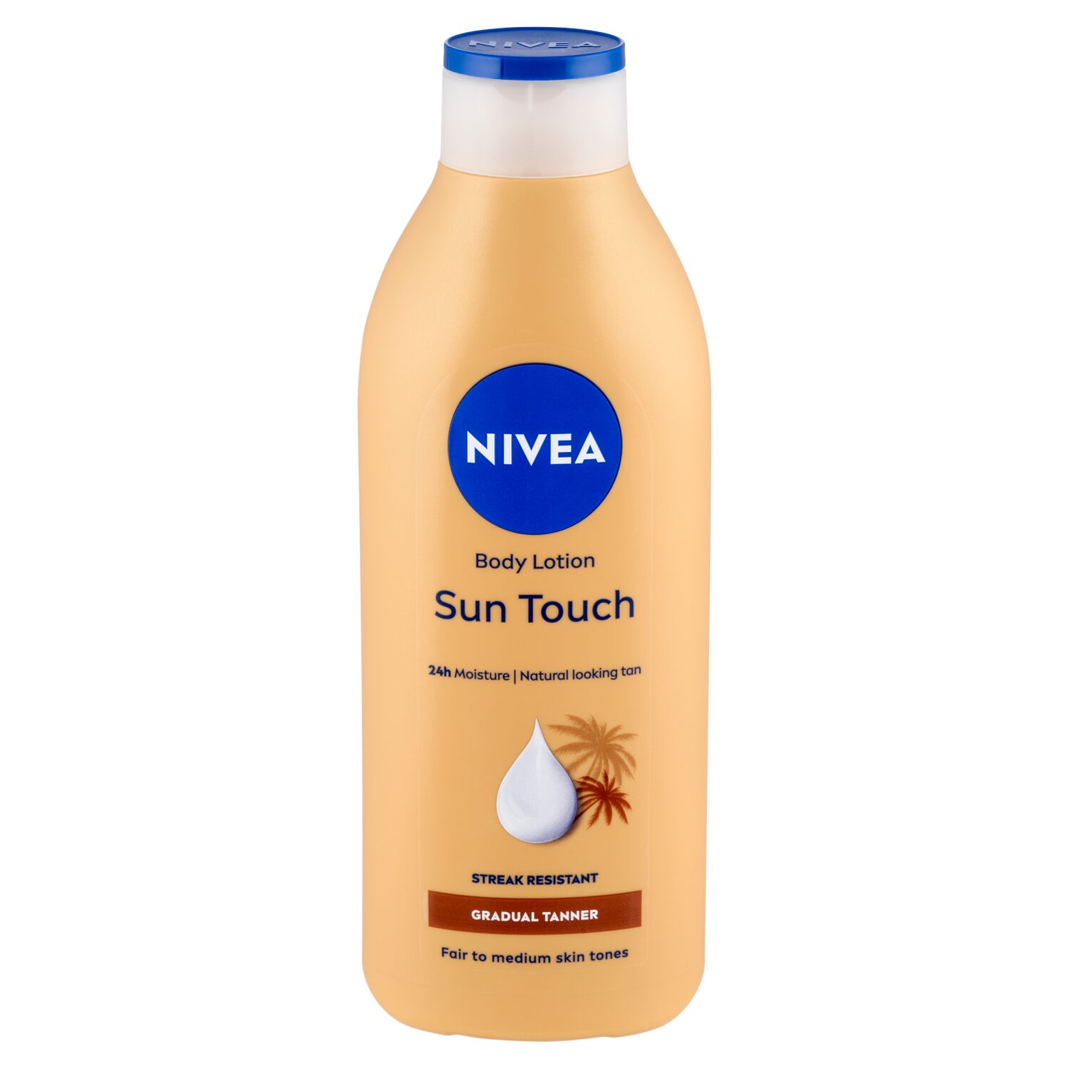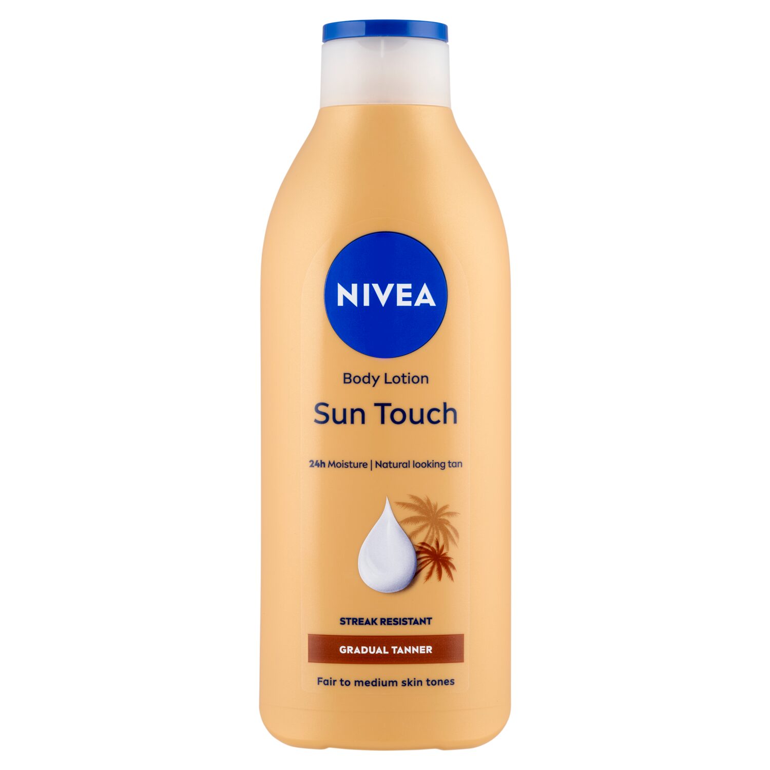 Önbarnító testápoló gingko biloba kivonattal és szőlőmagolajjal az intentív, 24 órás hidratálásért és a ragyogó, selymesen puha bőrért. Természetes napbarnított hatást kölcsönöz a bőrnek. Minden bőrtípusra ajánlott, egyenletes, csíkmentes barnaságot nyújt. Bőrbarát összetevőkkel, hatása bőrgyógyászatilag igazolt. Hosszan tartó természetes barnaság és puha, ápolt bőr: NIVEA Sun Touch Önbarnító Testápoló 400 ml.