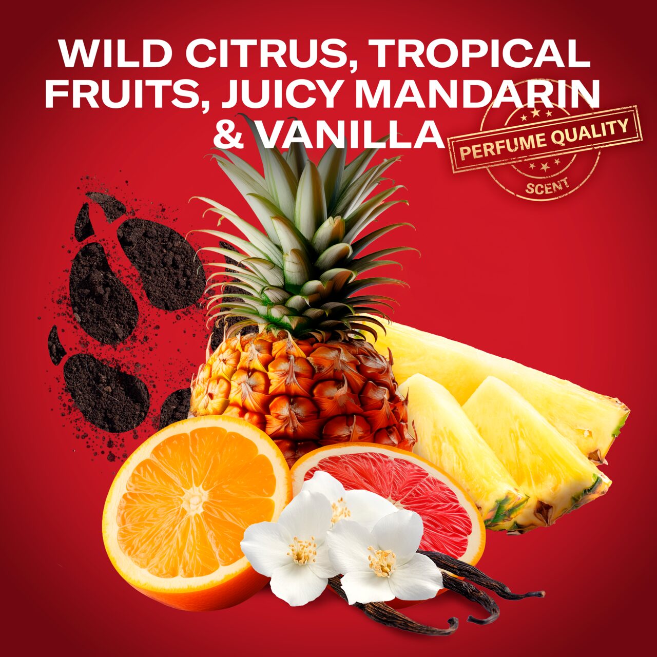Próbáld ki az Old Spice Wolfthorn parfümminőségű illatát: A vad citrus, a trópusi gyümölcsök, a lédús mandarin és a vanília jegyeit ötvöző friss illat felébreszti a benned szunnyadó féktelenséget