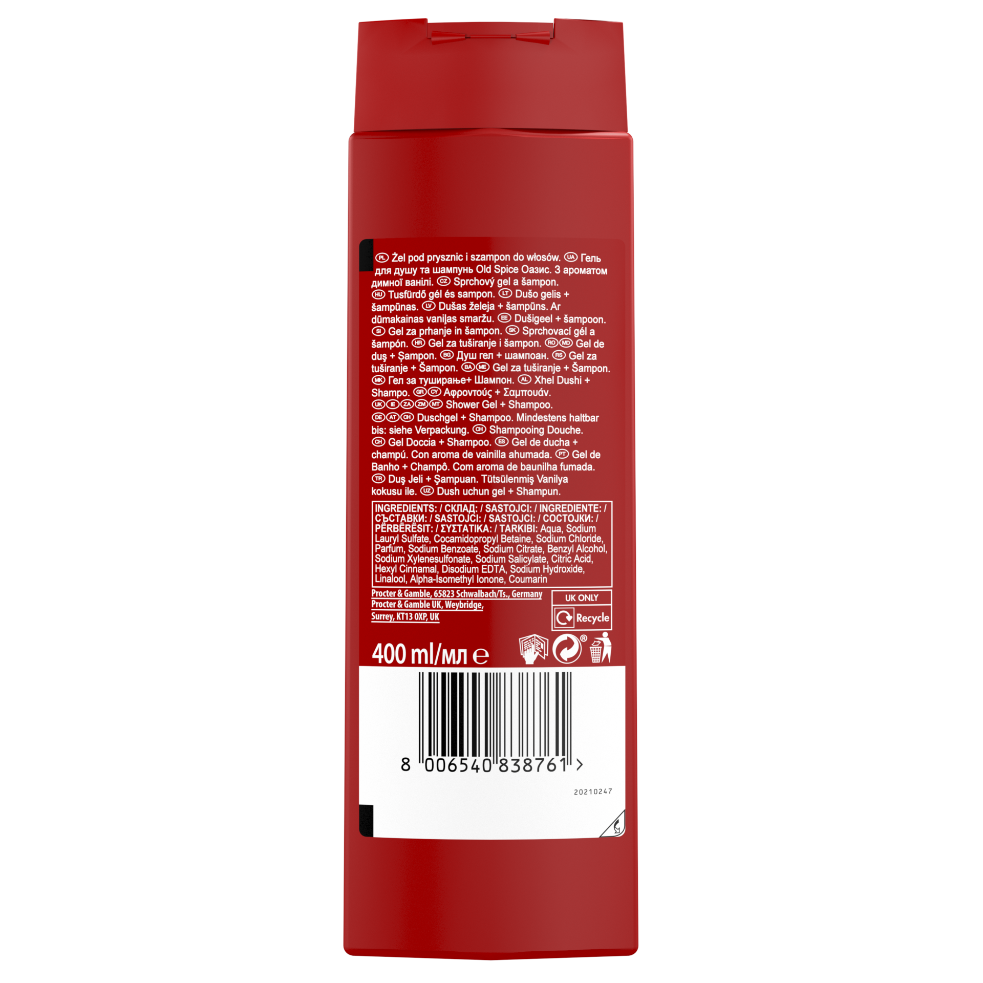 Élvezd a felejthetetlen, hosszan tartó frissességet és a magabiztosság illatát az Old Spice Oasis sampon és tusfürdővel. Mélytisztító formulája elbánik a piszokkal és a kellemetlen szagokkal, miközben friss és tiszta érzetet biztosít.