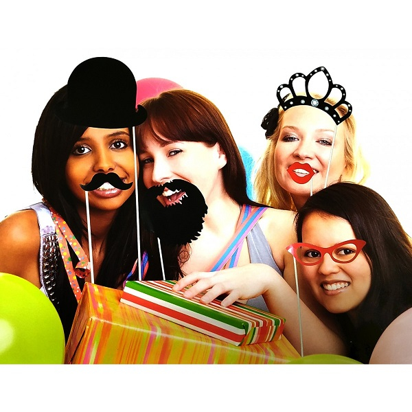 A legjobban bevált kiegészítő a viccesnek szánt fotókon a bajusz, minden mennyiségben. Ebben a 17 darabos pálcikára erősített díszek között a 3 féle bajusz mellett, találhatunk szakállat, kalapot, koronát, különböző vicces szemüvegeket és „Monroe-s” szájakat is. Egyszerű jelmez lehet a farsangon vagy bármilyen beöltözős partin, vicces képeket készíthetünk segítségével esküvőkön a vendégseregről. Feldobhatjuk vele a képeinket. Minden dísz külön pálcikán található.Méretek: 30 x 23 x 2 cmSúly: 0,095 kgAnyag: Műanyag