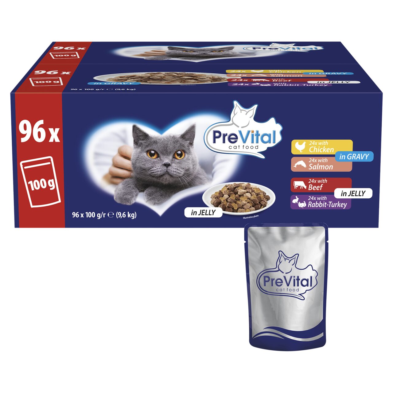 PreVital Alutasakos Macskaeledel – Giga Box Vegyes Ízben Szószban 96×100 g