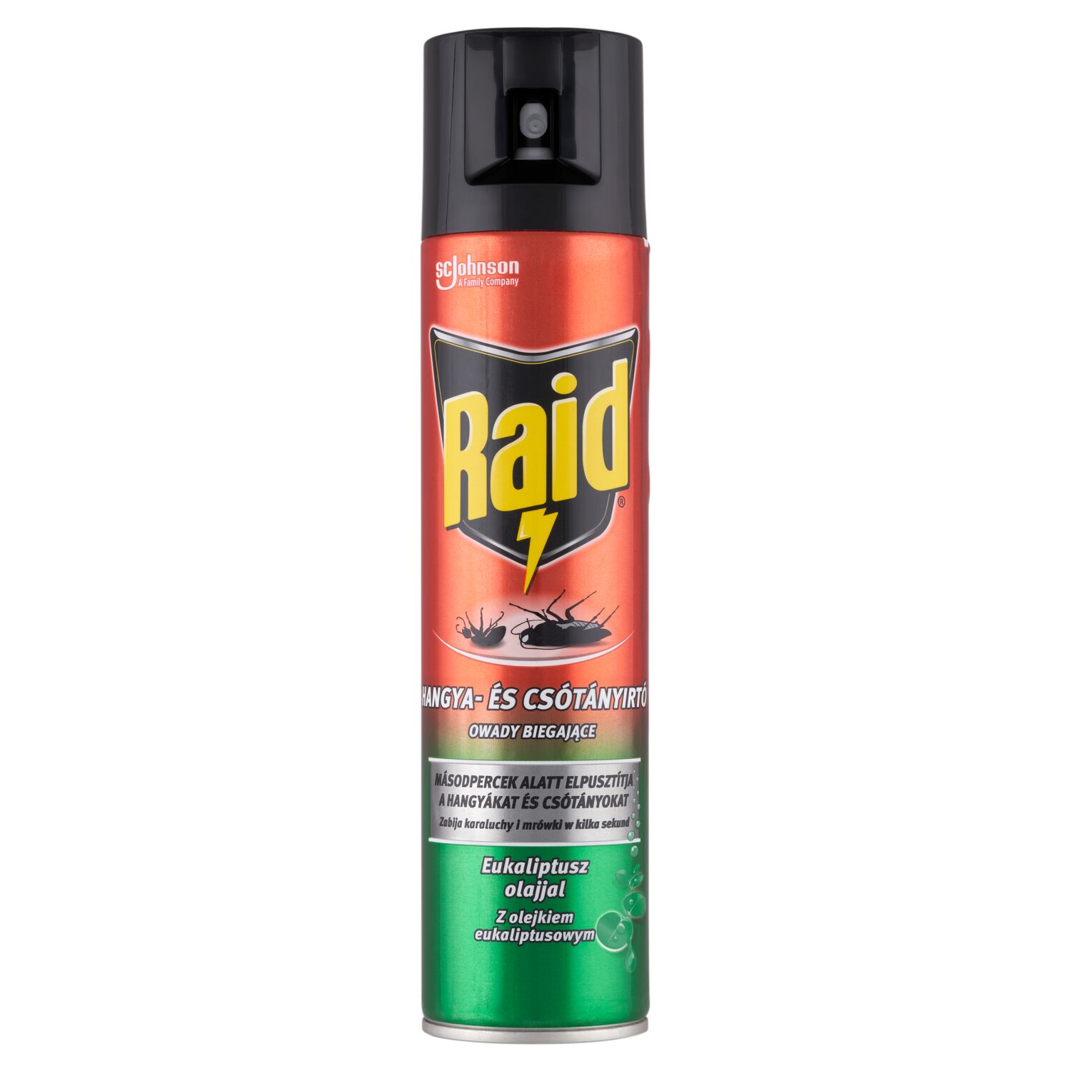 A Raid hangya- és csótányirtó aeroszol eukaliptusz olajjal hatékony megoldást nyújt a lakásban megjelenő rejtett életmódú rovarok – például csótányok és hangyák – irtására. A permet közvetlenül alkalmazható a rovarokra, valamint azok búvóhelyein és vonulási útvonalain is.
