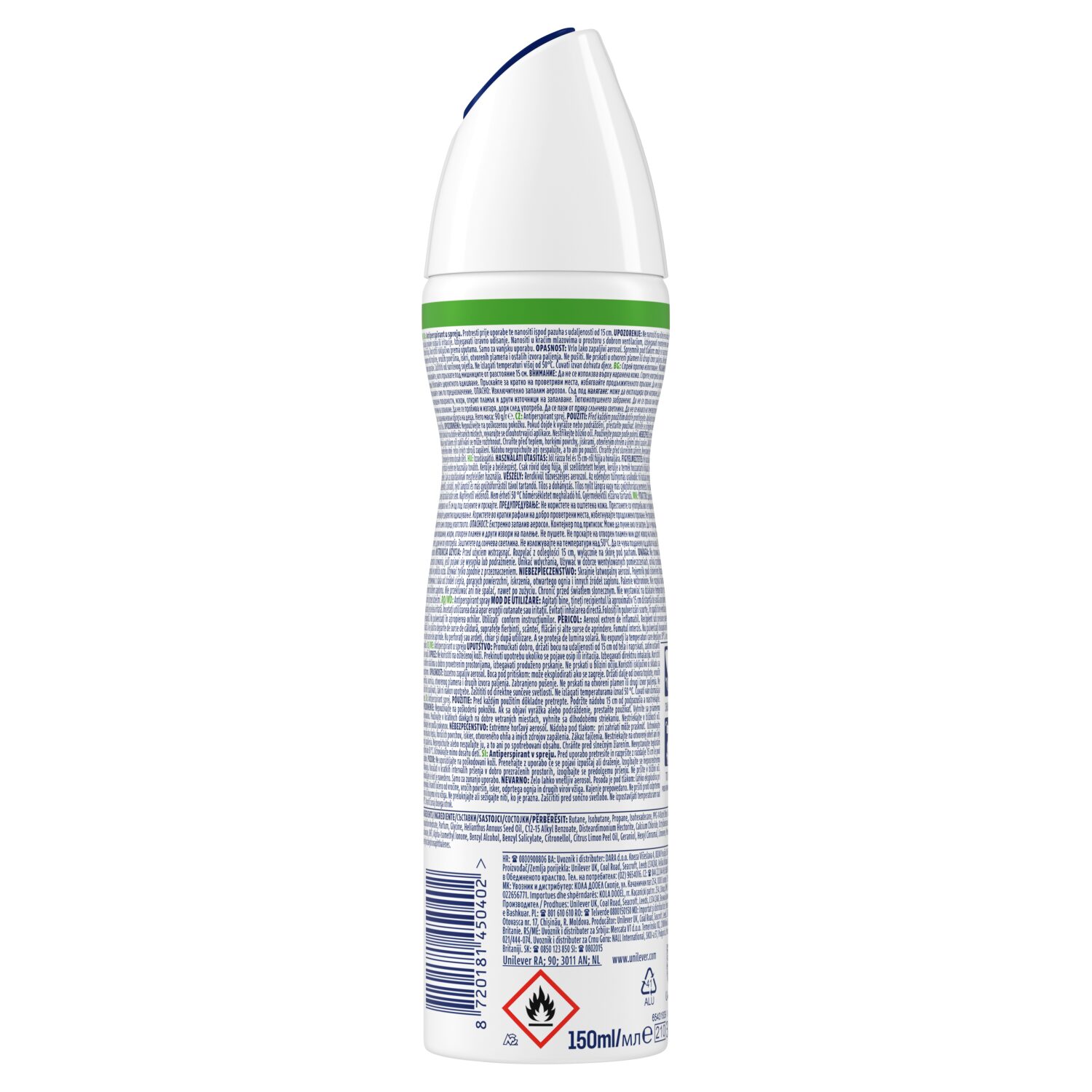 Butane, Isobutane, Propane, Isohexadecane, PPG-14 Butyl Ether, Aluminum Sesquichlorohydrate, Parfum, Glycine, Helianthus Annuus Seed Oil, C12-15 Alkyl Benzoate, Disteardimonium Hectorite, Calcium Chloride, Octyldodecanol, Propylene Carbonate, BHT, Alpha-Isomethyl Ionone, Benzyl Alcohol, Benzyl Salicylate, Citronellol, Citrus Limon Peel Oil, Geraniol, Hexyl Cinnamal, Limonene, Pinene, Tetramethyl Acetyloctahydronaphthalenes