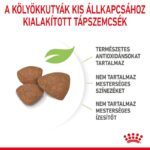 - Optimális tápanyagfelvétel: specális krokettméret, alakja és struktúrája a kis állkapcsokhoz igazított, megkönnyíti a rágást