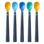 Az 5 darabos, divatos színû etetõkanalak közül a kisfiúk és kislányok is megtalálják a kedvencüket. Kifejezetten az elsõ igazi szilárd falatokhoz tervezve. A puha, rugalmas, lapos fej gyengéd a kis szájacskákhoz és az érzékeny ínyekhez, így nem okoznak kellemetlenséget, miközben a finom falatok célba érnek.