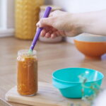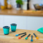 A hosszú nyél segítségével könnyen elérjük a bébiételes üveg vagy bármely edény alját. Csúszásgátlóval ellátott kialakításának köszönhetõen nem csúszik bele a tálkába.
