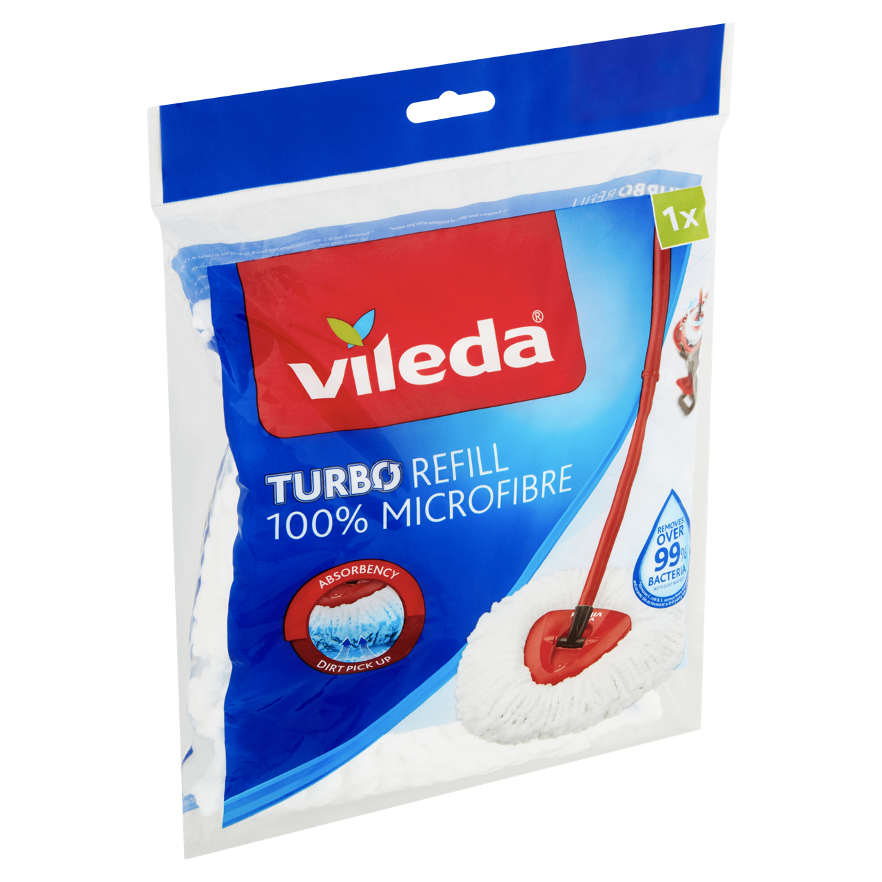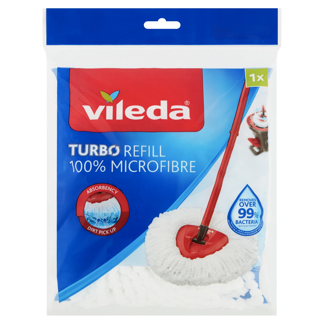 A Turbo Classic gyorsfelmosó utántöltő optimális választás, ha bármelyik Vileda Turbo pedálos felmosó szettel rendelkezik és elhasznált darabját szeretné lecserélni. A 100%-ban mikroszálas anyagból készült felmosó fej kiváló nedvszívóképességgel rendelkezik és segít a zsíros szennyeződések könnyú eltávolításában. Ráadásul eltávolítja a baktériumok akár több, mint 99%-át, csak vízzel.*