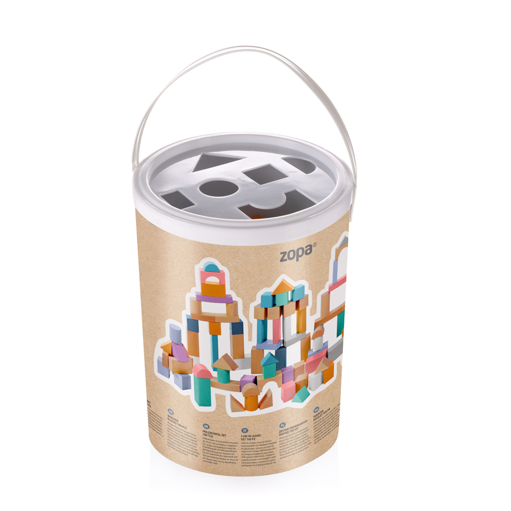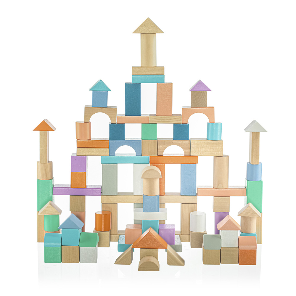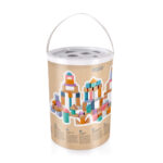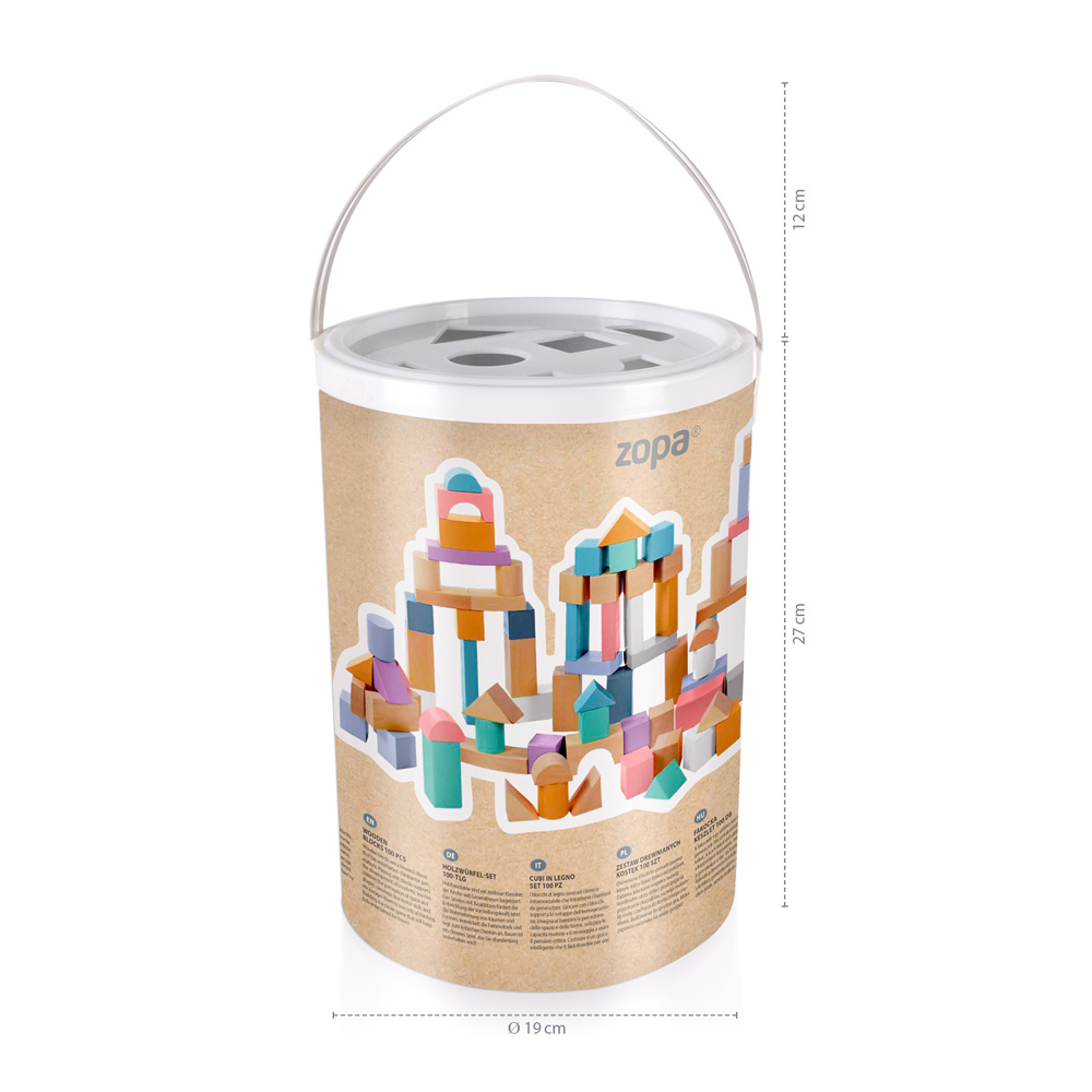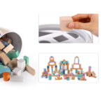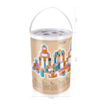 A kockák minõségi fából készültek, és praktikus vödörrel rendelkeznek, amely lehetõvé teszi a könnyû tárolást és szállítást. A vödör fedelét úgy tervezték, hogy a gyerekek gyakorolhassák az alakfelismerést, miközben szórakoztatják a blokkok tisztítását. A praktikus fogantyú a könnyû hordozhatóságot biztosítja, hogy a kockák bárhová magukkal vihetõk legyenek, így a gyerekek otthon, látogatáskor vagy a szabadban egy takarón játszhatnak.